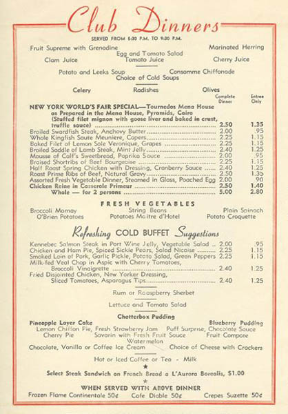 In fact, the New Yorker is a Depression-era Deco Supreme, and, when it was built in 1930, the biggest hotel in the world. The power plant in its basement was the largest private plant in the country, powering the 42-story building and its 10 private salons, five restaurants, 42-chair barber shop, and 92-operator switchboard. Its world-famous Terrace Room, where Benny Goodman played nightly from 7 p.m. until 2 a.m., had a retractable ice rink for luncheon stage shows, and for two bucks you could get a deluxe dinner of sweetbreads mousse or a whole sautéed kingfish. Early advertisements promoted the hotel’s Protecto-Ray Bathrooms (“They’re sealed with cellophane!”); central air and heating (“made-to-order weather!”); and the truly unique amenities of something called Novolescence (“a word coined to describe our $2,000 improvement program!”) which may or may not have been, simply, in-room television.