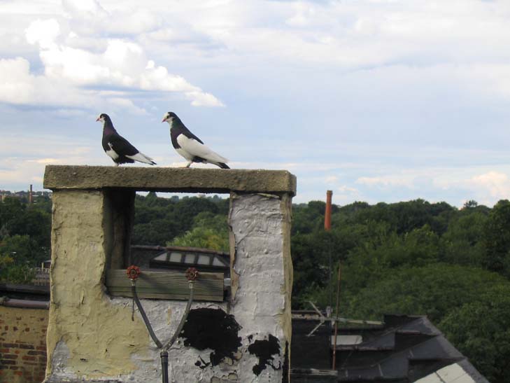 The game Joey and his brother and friends play in the skies above Brooklyn is a variation on this intelligence. The war isn’t just a race of distance. Not even the same pigeons are used. The war is a lower-stakes continuation of a game once played in Modena, Italy, called the Triganieri (where the losers’ birds were killed) and a relative of a game still played in the Turkish city of Urfa (involving over 500 flocks of birds). The Brooklyn Pigeon Wars, as they call it, is an aerial social casino. To play, a coop owner releases all or a portion of his pigeons, letting them fly freely in a flock over Brooklyn, meeting up with similar flocks released by other owners. An intricate dance ensues. The flocks intermix. No one knows what actually happens in bird-speak up there in the sky, but perhaps the pigeons are saying to each other, “What’s up. Like my style? We got a real happening crib. Great view. Come back home with us and we’ll show you where it’s at.” At a certain point the flocks turn homeward, arriving lesser or greater in number than they started out. A captured bird’s fate depends on the victorious owner. It might be kept and trained to fly with the new flock, or it might be ransomed. A coop owner might lose half his flock in one night, while others gain as many. This is how birds are lost and won.