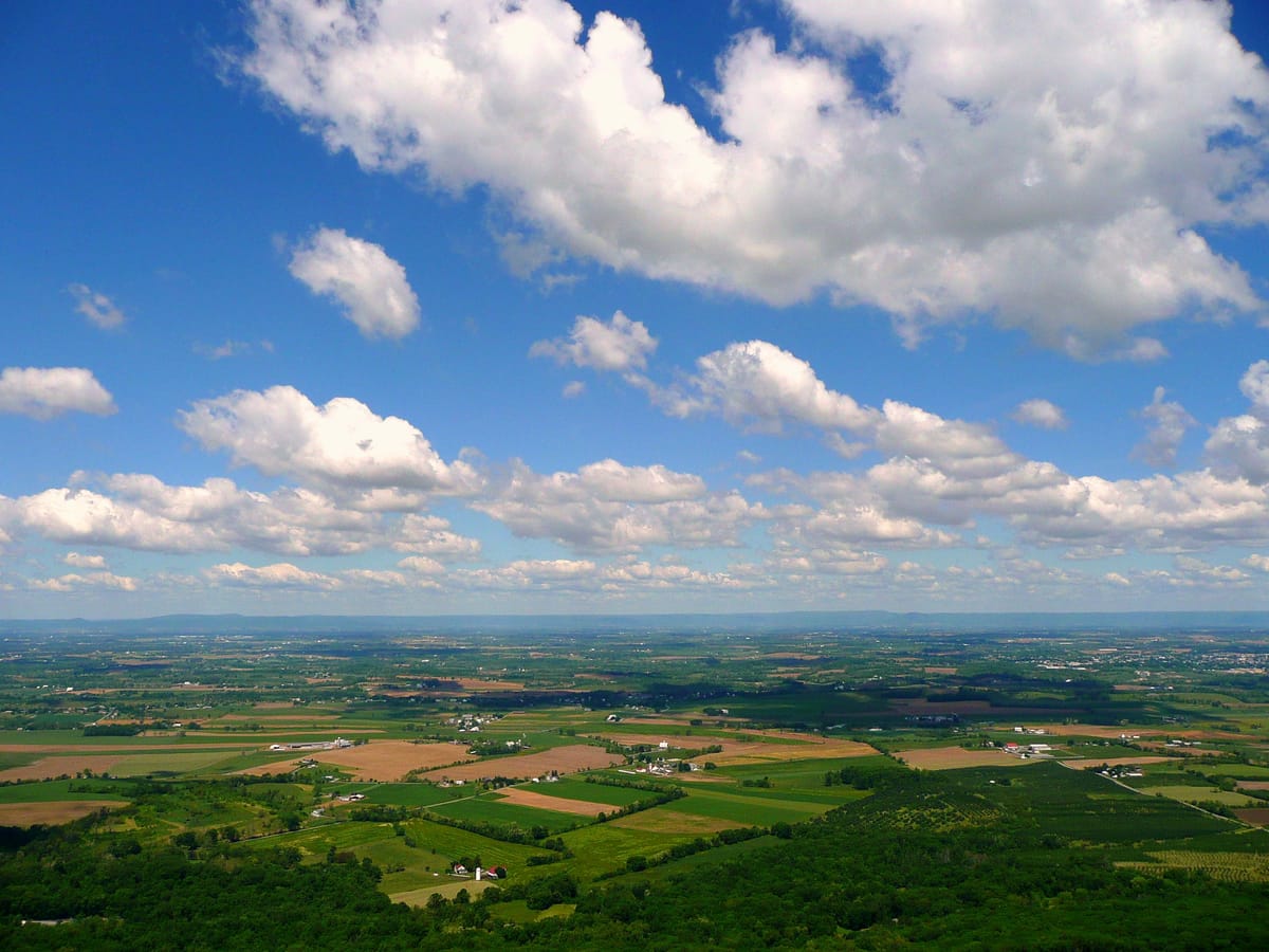 The skinny part is all hills, ancient mountains long worn down, once as tall as the Himalayas but now smoothed out like old molars. On topographical maps, it looks like a tablecloth pushed together from the ends, a worried forehead, or corduroy. Those hills make a horizon that rises and falls like the humps of a sea monster. Those hills hold you like endless warm blankets. They’re green in the summer but, when the leaves fall, they exhale a long breath and fade into their thousand browns and thousand grays. The hills wear clothes for half the year and wear nothing at all for the other half, but they’re always there.