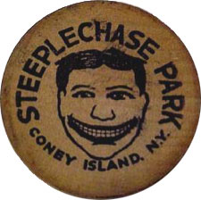 Meanwhile, stragglers wander up to hear what came of the rally. One of them is a Long Island man, Paul Brigandi, with an extraordinary collection of Coney Island artifacts. “I have all the blueprints to Steeplechase,” he boasts—referring to one of the beach’s now-razed theme parks—and wipes the sweat off his brow. He is ready and willing to step into the present development morass with a silver bullet. “It’s been designed and ready to build since 1983. I’ve taken it to a whole new level. I could cover this place from 10th Street all the way down—fill it with unique attractions I’ve designed myself. I’ve got the whole package—attractions, rides, museum. I took it to Thor, I took it to the city—they were blown away.” Brigandi wears the Steeplechase Funny Face on a chain around his neck and freely offers his analysis of the famously maniacal grin. “What else would put a smile on a man’s face but sex?” he says. The Funny Face, apparently, is getting a blowjob. This revelation is the only news of the day.