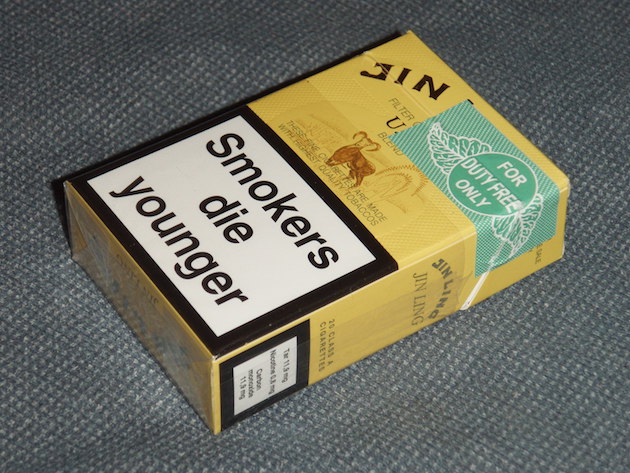 Jin Lings are in perfect position to be trafficked all over Europe. Kaliningrad is geographically separate from the rest of Russia, sandwiched between Lithuania and Poland with a sizable coastline on the Baltic Sea. Jin Ling cigarettes can easily be smuggled on land through Kaliningrad’s two former Soviet bloc neighbors. They have made it as far as Britain, and in case anyone needs a highly ironic reminder, all packs of Jin Lings have a duty free sticker on them. (They also don’t include any of the EU-mandated health warnings.) In Britain, it’s common for Jin Lings to be sold door-to-door in poorer housing developments or at convenience stores. Less officially, traffickers open their trunks and sell the cigarettes directly from their cars to customers.
