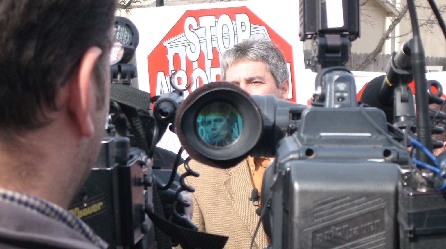 Over the next hour, he did most of the talking, answering my questions about his tactics with a mash-up of Bush administration war-on-terror rhetoric, complaints about the media, and populist language sprinkled with sports metaphors. He said the best strike against abortion was “a preemptive one.” The only way to get their message out was to “run an end-run around the mainstream media.” Operation Rescue wanted to “bring it to the people.” He’d picked up the term “every tool in the toolbox” from Donald Rumsfeld and described the trucks as satire, as funny, saying, “if you can’t laugh, you’re dead.”