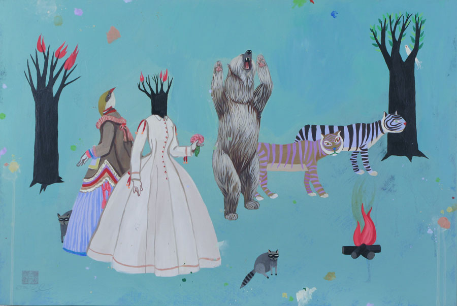 I’m drawn to the creatures in your work. They seem equally inspired by folklore, fable, and nursery rhymes. Who are these animal-human hybrids?