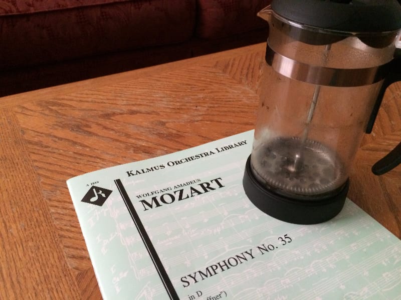 The director wakes up between seven and nine, depending on whether his day will be more administrative or artistic. “A music directorship requires a balance between the two.” He reads email on his phone while he makes coffee (two cups in the morning, but the second one usually turns cold and is left unfinished). He showers and has a piece of toast or fruit in front of the computer.
