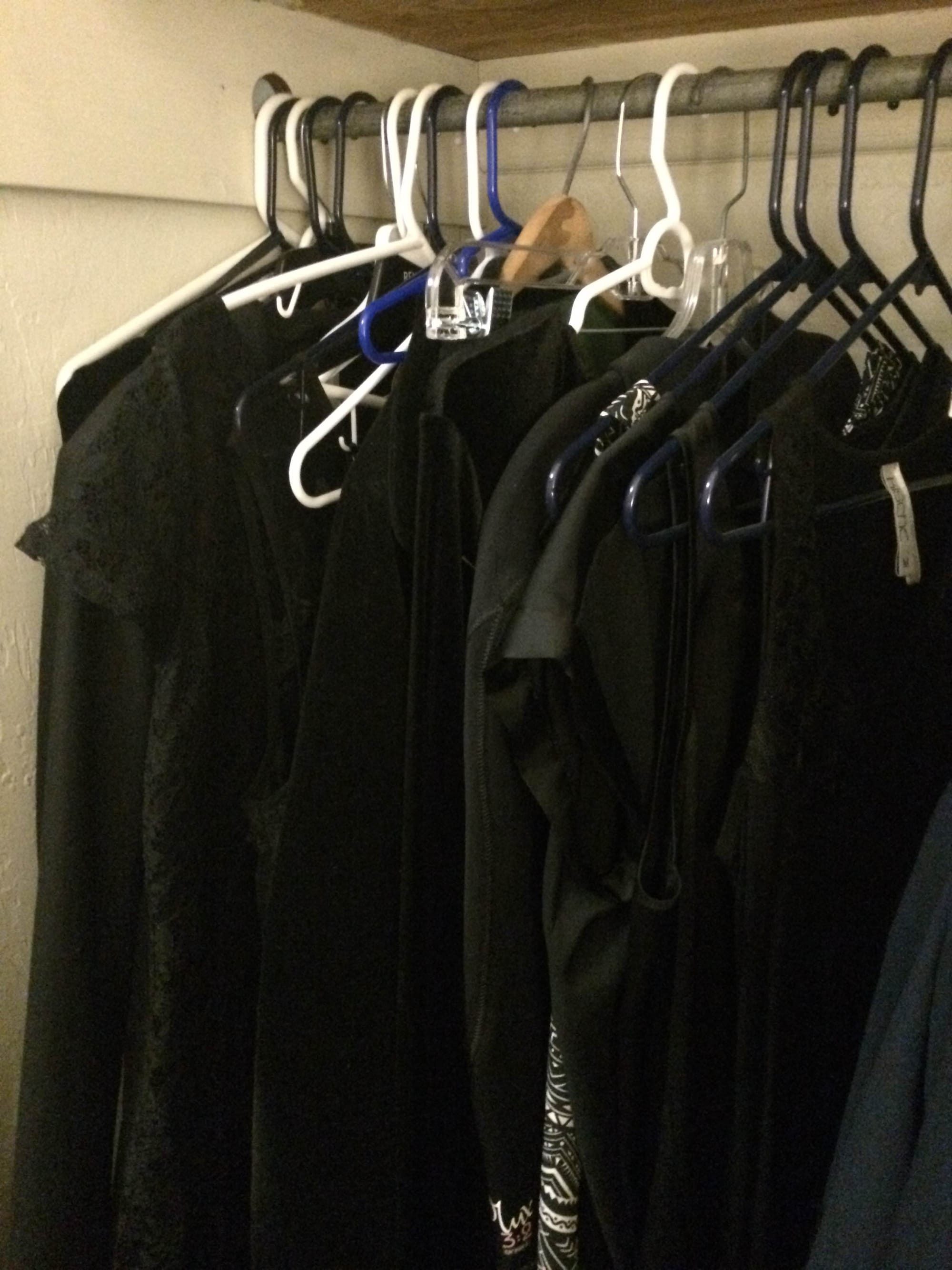 The tux-free violinist always finds herself in all black—usually either dress pants and a blouse, or a long skirt. She has a long black dress for special performances. Sometimes she has to check to make sure all the pieces are the same shade of black, since black clothing will fade differently and wreak havoc on her performance wardrobe.