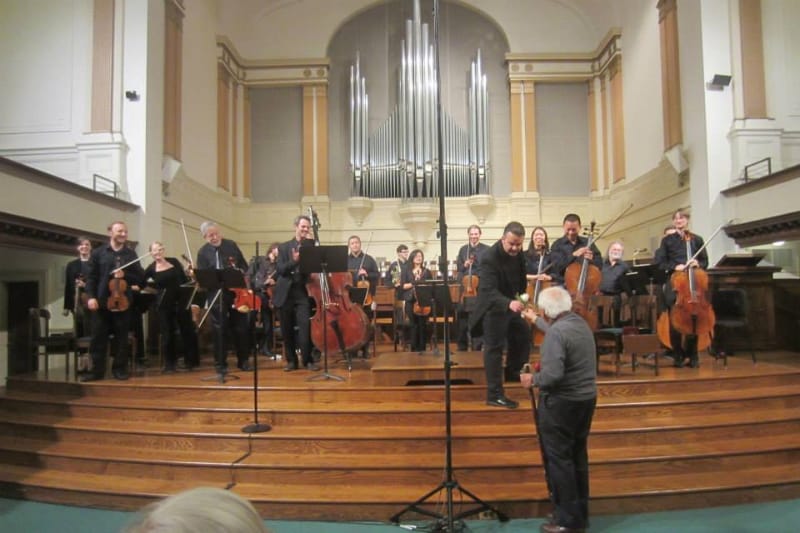 The violinist is stress-free. He’s been doing this for 12 years. “The work for this performance has been done and now it’s time to just go out and do.”