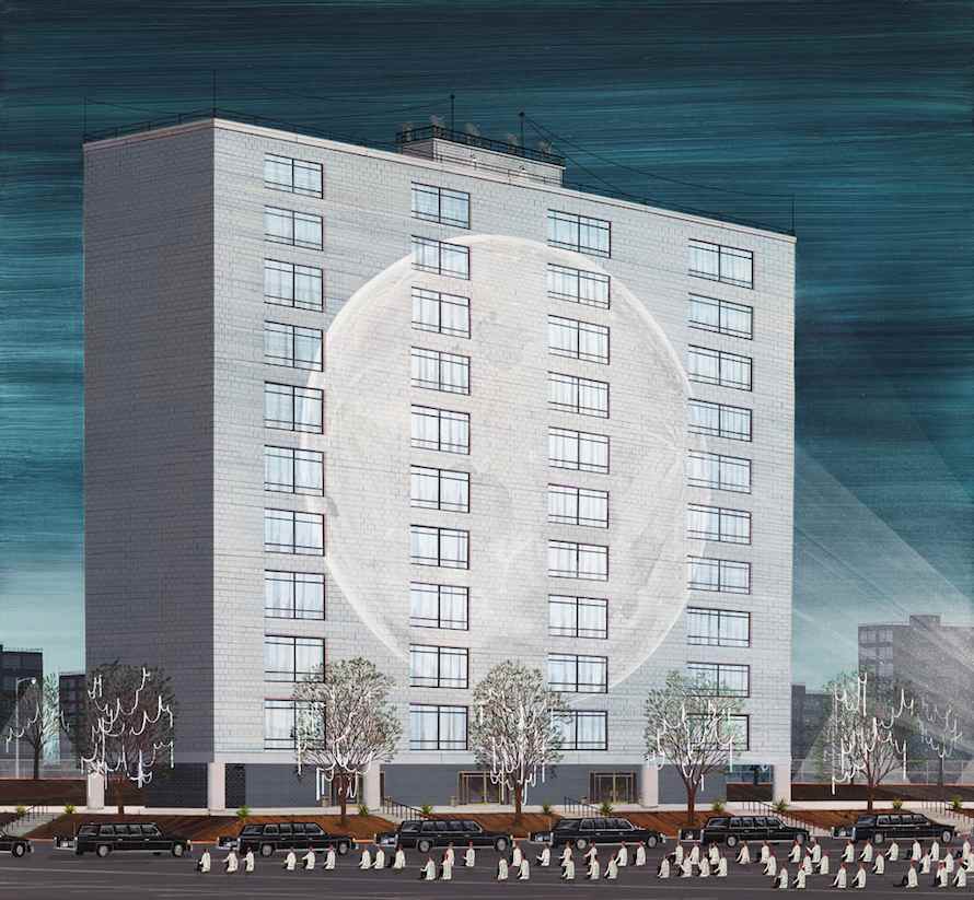 ID: Ideally, I’d like the viewer to spend enough time in front of the painting for it to unfold for them. Hopefully there is a graphic or compositional quality that lures them in, so to speak. Once they’re in front of the painting and it has their full attention, all the little details become visible. If they are open to it, then they can pay attention to the painting part or the image part. Hopefully both. The idea is to describe something very clearly, yet there’s still an element of “what’s going on here?”
