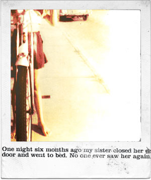 Normal evening routine: Your sister goes to her room, closes the door, and falls asleep. Normal, that is, until you never see her again.