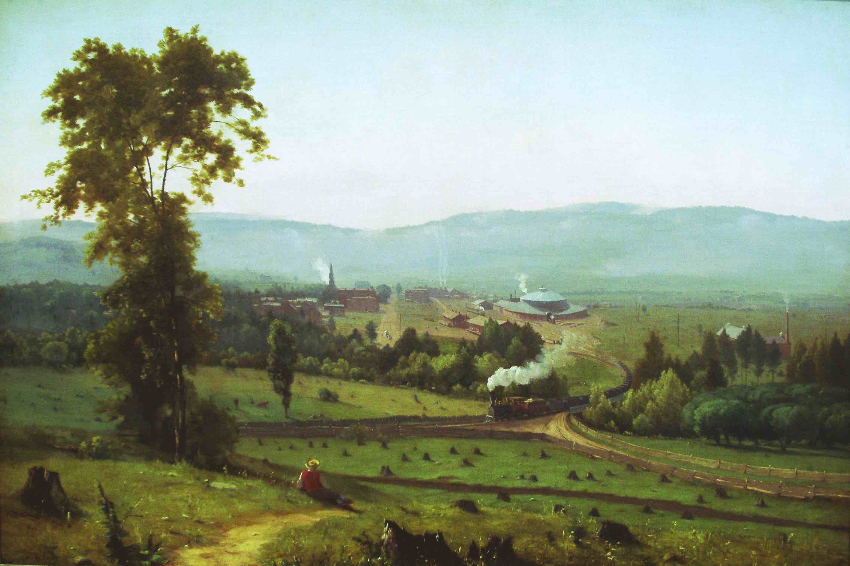 Look at these two works by 19th-century American George Inness. Plain, simple landscape—to take genre and color out of the equation. Paintings that would hang together, and that seem as common to museum walls as ever. The earlier one, “The Lackawanna Valley” (1855), isn’t an exciting painting: