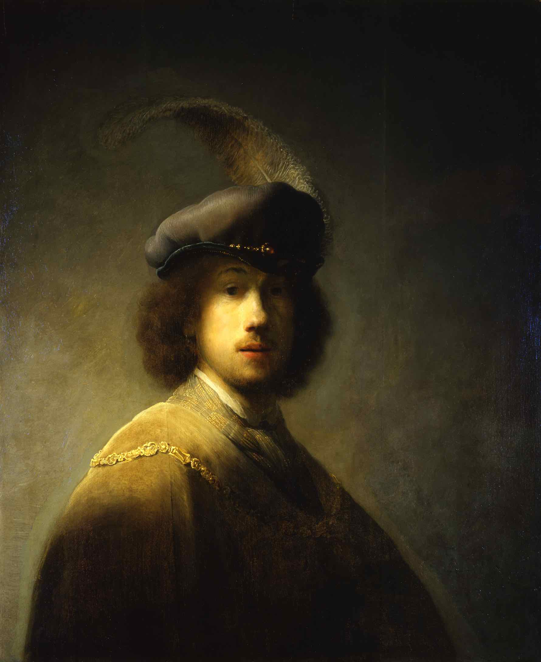 First, there’s the content of the painting—call that the plot. Thing one. What’s happening in the painting. Rembrandt is wearing a funny hat and looking at you:
