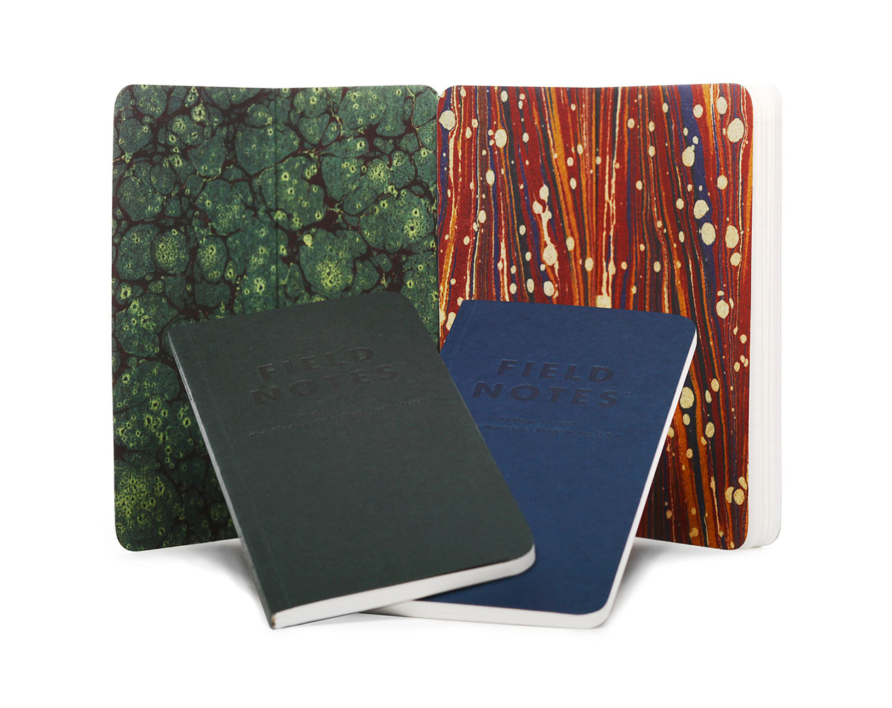 A slim profile. Perfectly simple, sturdy covers. Sewn-in-signature binding. Vintage marbled end papers. High-quality paper. Check out “End Papers” from Field Notes.