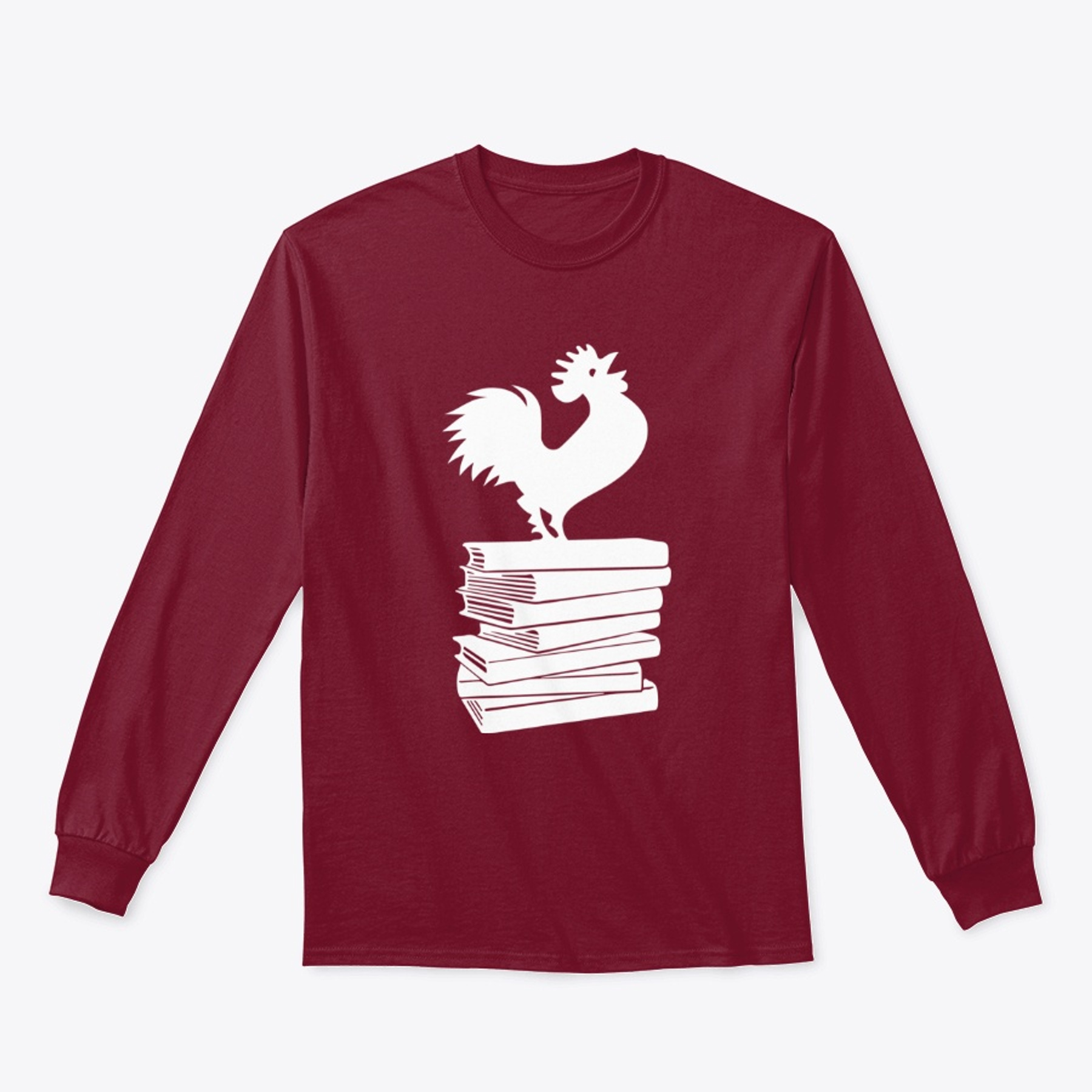 Now available for Winter 2021: ToB reading apparel for the months ahead with our classic 2016 Rooster design from book designer Janet Hansen, including mugs, sweatshirts, a blanket, and more.