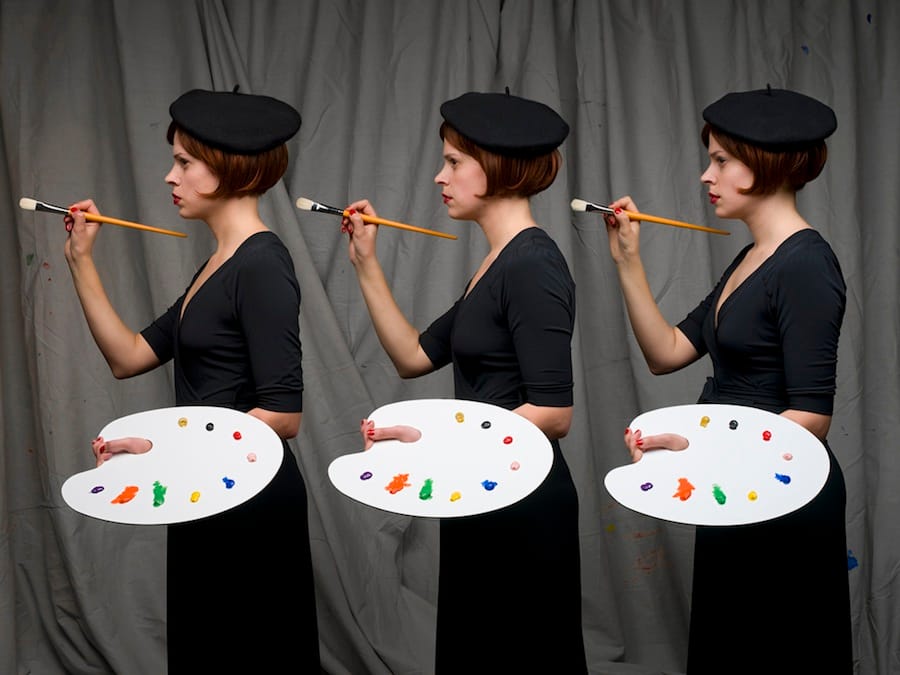 Alicia: Well, we three all found each other. We didn’t go out looking for Cary—he found us first. We were at a professor of ours’ retirement party, and two of us came to the party dressed as the professor, who’s got a white beard and a belly, and wears the same overalls every day. Cary was at the party because he was the neighbor of our professor. He was just finishing at National Geographic and wanted to work on something new, so he got in contact with our professor, who said, “Oh, there are actually three of them!” We met, had dinner, and we all wanted to start working together. The three of us were doing performances and had started thinking of some still shots of ourselves, but we had no idea what photography was really about until we met Cary.