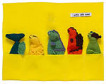 This set of five dinosaur finger puppets by designer Francesca Basilico will get the babies growling. A mini-monster for every finger makes for superior dinosaur fights. (Tip: Tyrannosaurus beats pterodactyl.) Hand-crocheted cotton in yellow wool felt pouch.