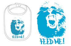 This 100-percent cotton bib has a Velcro closure. The “feed me” print was created by San Francisco artist Nathan Tan, and is also available on T-shirts for babies and kids.