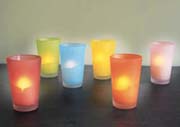 Pretty frosted glasses in fruity colors. These are an excellent gift to keep around in case someone surprises you with a present. You can put candles in them, or even small bunches of flowers.