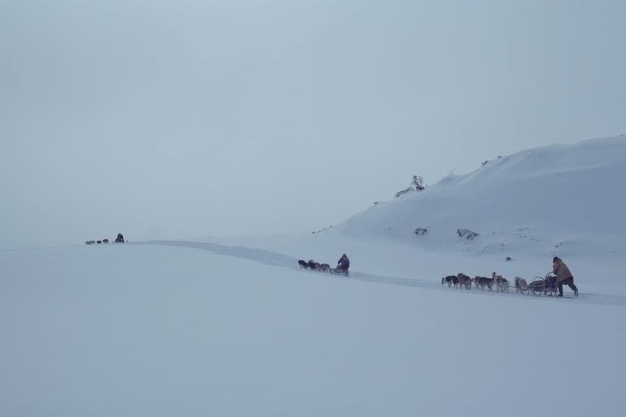 Inside the cabin got so warm that the air burst into steam every time someone opened the door. I sat on a bench with my knees tucked against my chest. Around me, they talked about old adventures. The snowmobile that fell into the river, remember? The team that got lost for four days in a blizzard? The fish they’d caught, the animals shot. Outside sounded only like what it was—120 worn-out dogs. The closest one called out, aaaoooouuu. “I have to record that,” a filmmaker in the group said. Aaaaooooouuuu.
