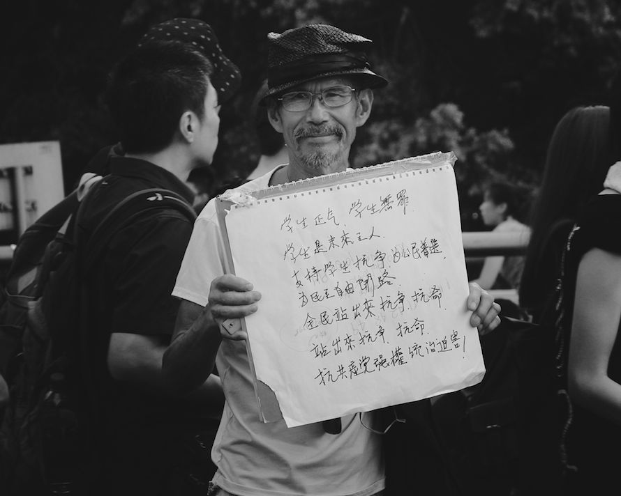Aaron Lam’s street photographs and interviews document the pro-democracy protesters in Hong Kong—participating in the most civil of civil disobedience movements.