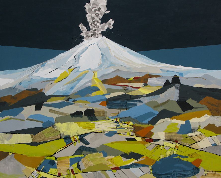 RM: Relaxing into the work was difficult. I had so many ideas, and still do, with where I want to take this series, and I want to get them all done right away right now! Settling down and not getting too wrapped up in all the possibilities, all the directions. There are still many volcanoes I want to paint, both real ones and imaginary ones.
