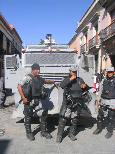 Over the following few weeks, it was obvious from the urgency of Anna’s messages that the situation was escalating: Demands were not being recognized, and the atmosphere in Oaxaca’s capital city, also called Oaxaca, was increasing in hostility. Then, on June 14th, governor Ulises Ruíz Ortiz dispatched riot police into the town square (zócalo) where the protestors were camped out.