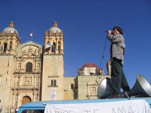 AM: I arrived in the capital city of Oaxaca, Oaxaca de Juarez, in mid-May 2006, at which time hundreds of public school teachers were beginning to organize, mostly coming from the capital and surrounding villages. The initial issues at stake for the teachers were, on the surface, to do with specific demands aimed at improving the education system (i.e., subsidized breakfasts for students so that they would not go to class hungry, higher salaries for the teachers, control over the material taught in the classes). Even from the beginning, though, these demands symbolized a larger struggle on the behalf of largely rural and indigenous communities to establish or maintain their basic rights.