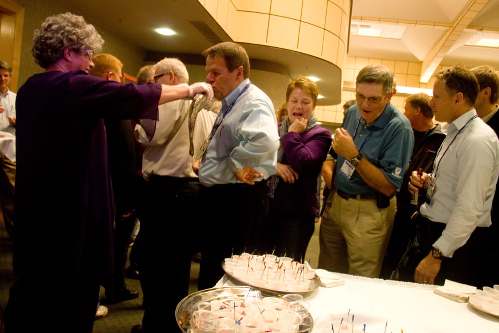 As a happening, the performance falls somewhere between a pageant and a pledge. It is a wholly unholy communion.